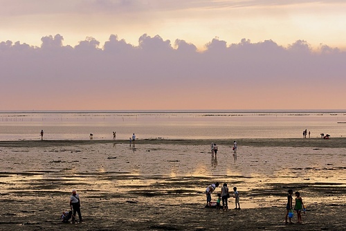 還沒有走入溼地,光是站在步道上就看到好多螃蟹呀!大大小小的螃蟹從泥堆裡爬出,驕傲得橫著走路,一窩蜂的成群移動,甚是壯觀呀!除了小螃蟹還有彈塗魚呢~真是個有趣的生態活動~感覺也蠻適合來這戶外教學呢!!!