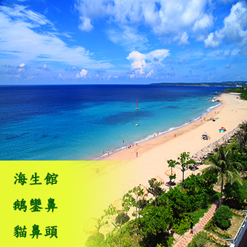 屏東墾丁國家公園鵝鑾鼻貓鼻頭海生館包自由行包車一日遊行程規劃:國立海洋生物博物館共分臺灣水域館、珊瑚王國館及世界水域館三個展示館,以及特展區定期舉辦特展。入口迎賓廣場上設有兩座親水廣場,提供遊客嬉戲及休憩之用。