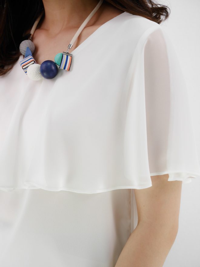 雙層寬袖圍邊雪紡上衣 – 白色